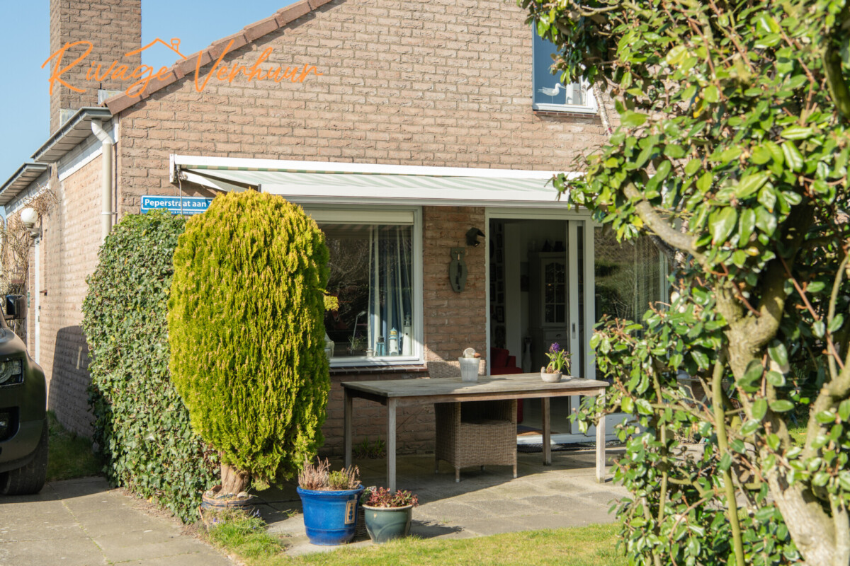Verstopt aan het eind van een rustig doodlopend straatje ligt een oase van rust verstopt op loopafstand van het strand. Via het hek kom je binnen bij de eigen parkeerplaats vanwaar je achter de struiken het private terras ziet.