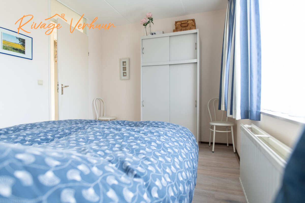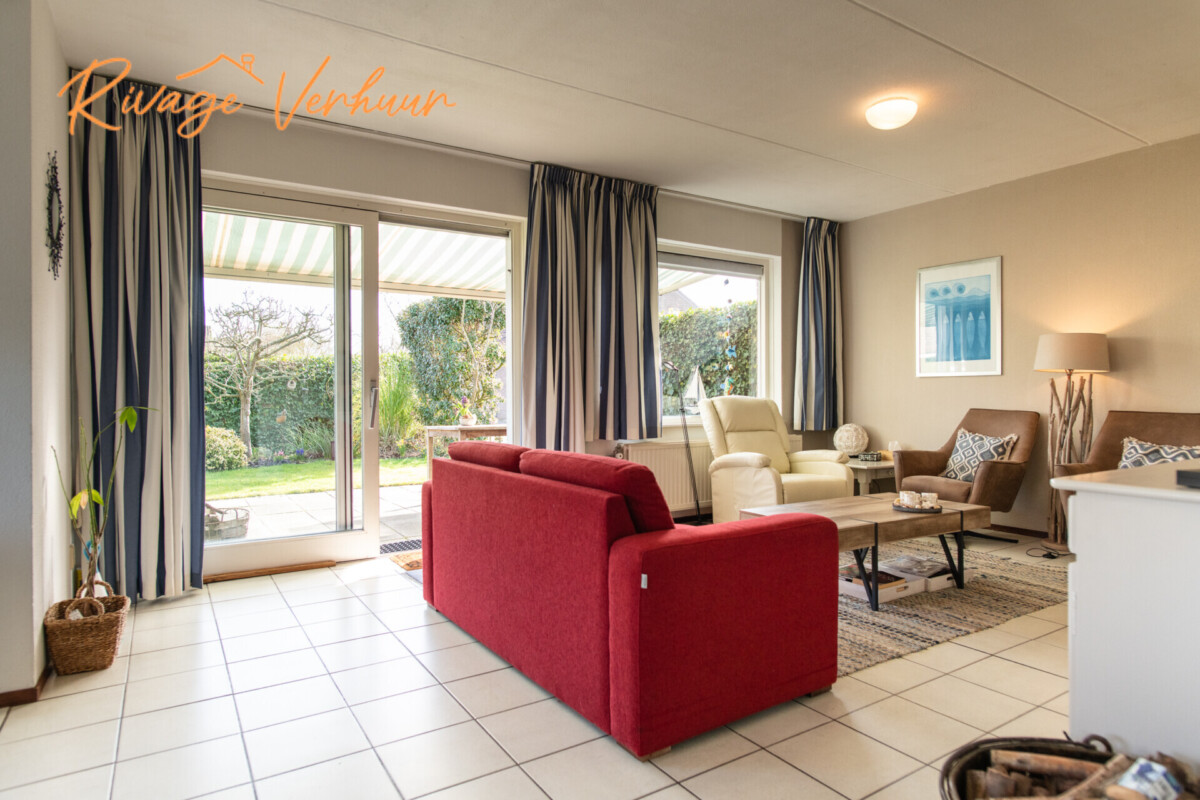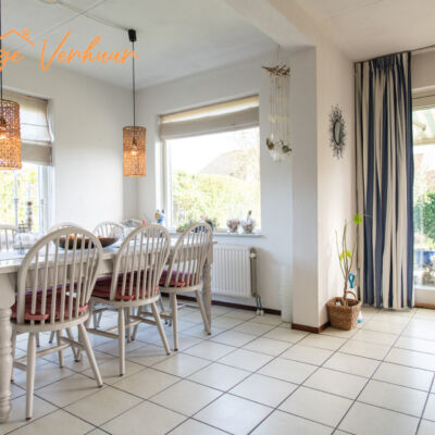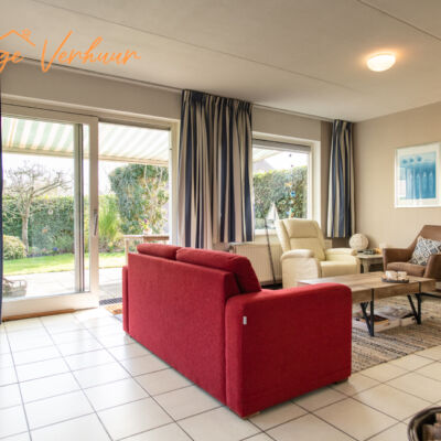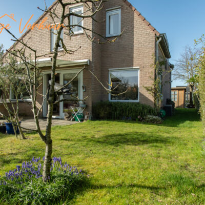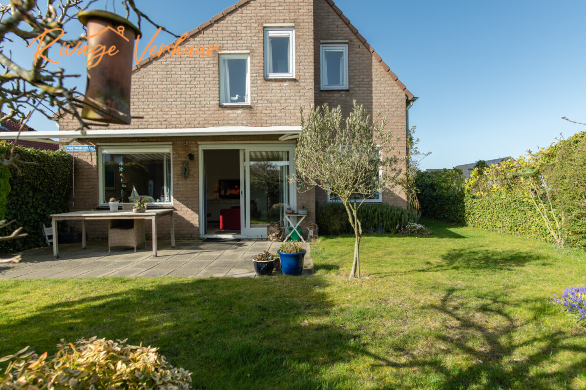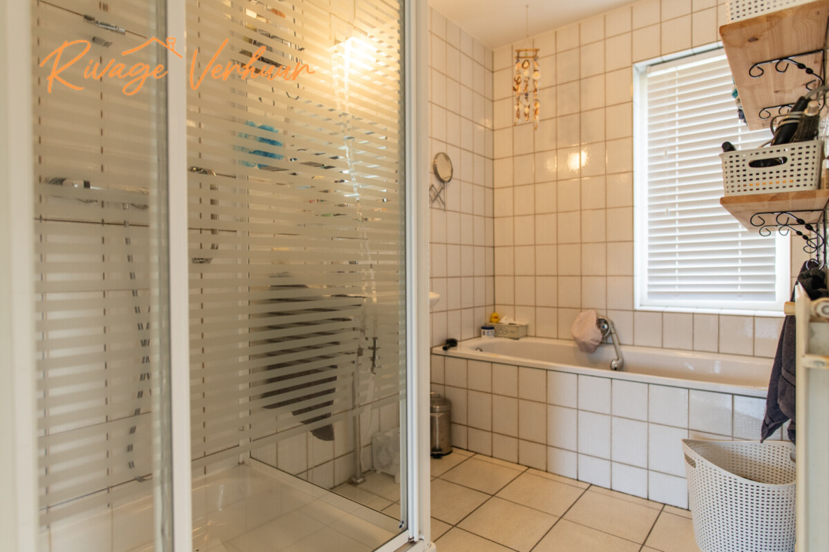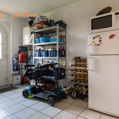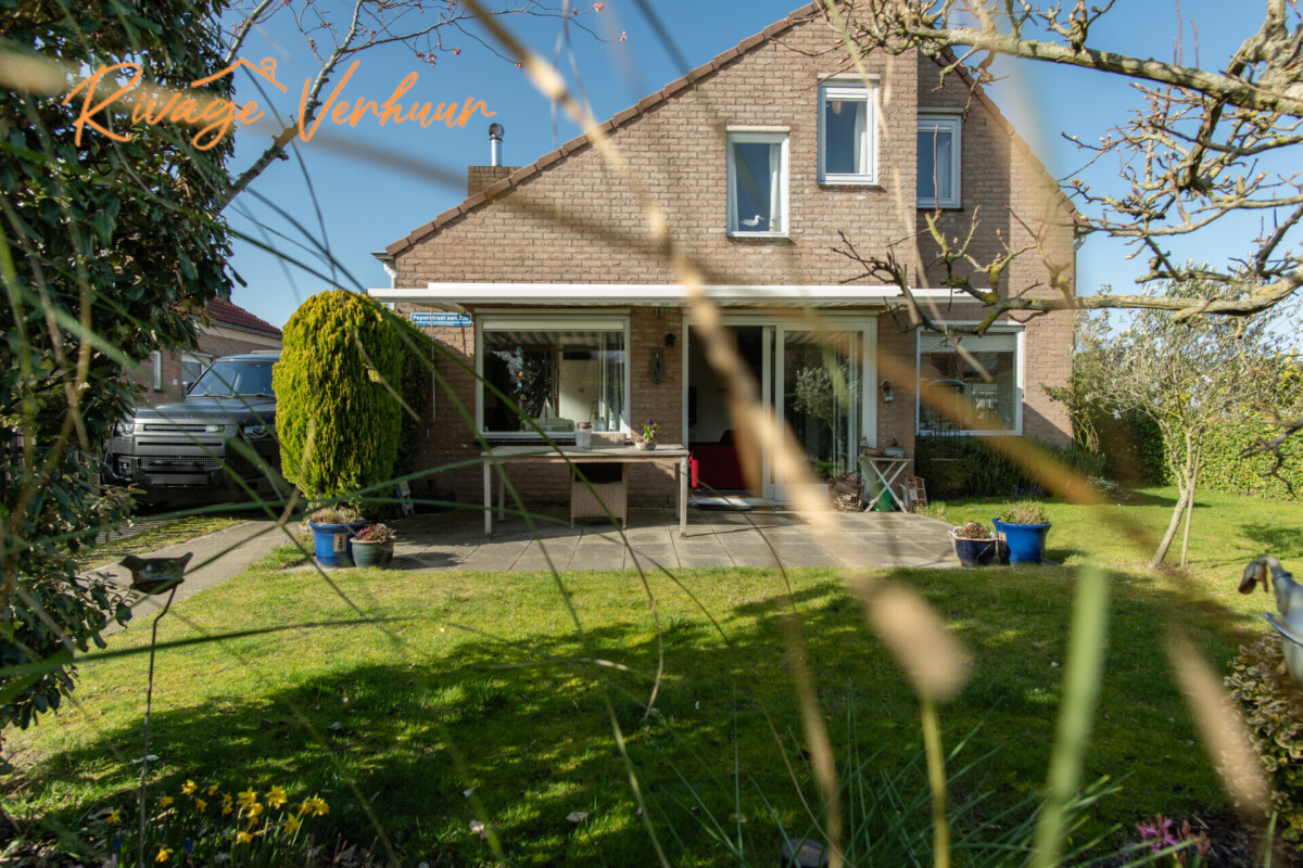 Na de keuken en bijkeuken kun je via de “achterdeur” naar buiten waar een ruim tuinhuis beschikbaar is voor fietsen of iets anders. Deze vrijstaande recreatiewoning staat midden op het ruime perceel van 340 vierkante meter eigen grond. Je kan dus overal in de zon of schaduw zitten afhankelijk van het weer en het moment van de dag.
