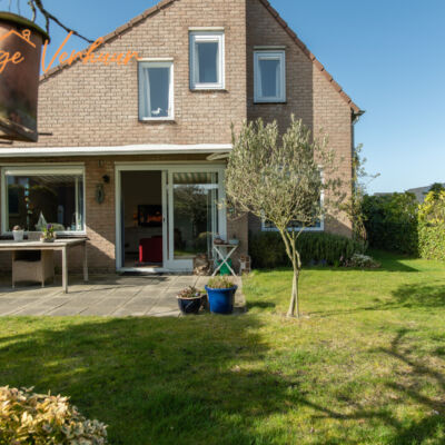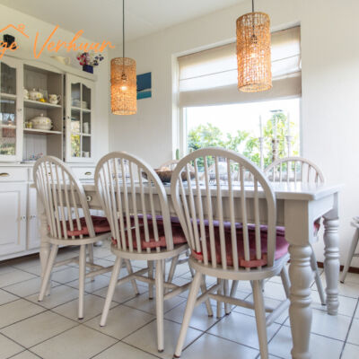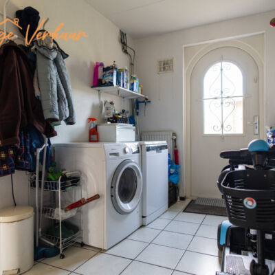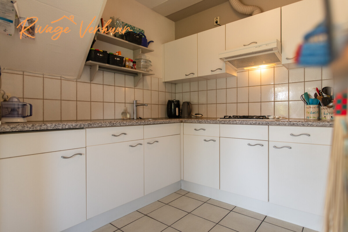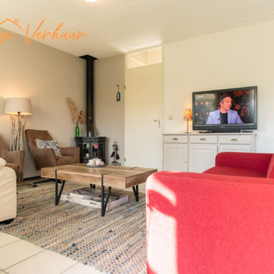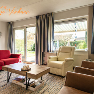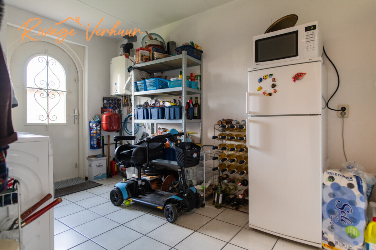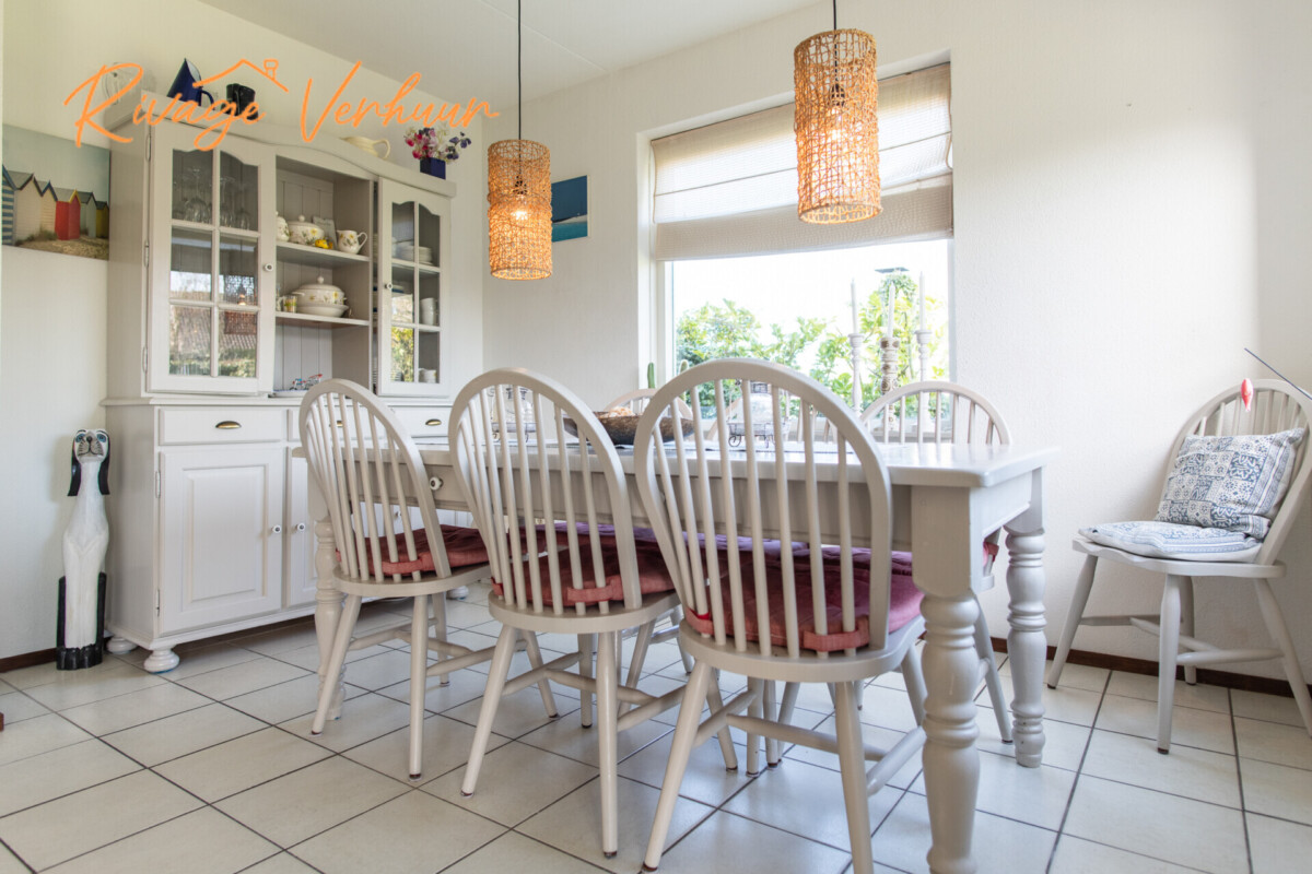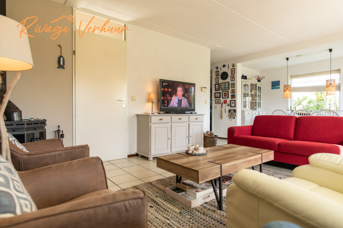 Na de keuken en bijkeuken kun je via de “achterdeur” naar buiten waar een ruim tuinhuis beschikbaar is voor fietsen of iets anders. Deze vrijstaande recreatiewoning staat midden op het ruime perceel van 340 vierkante meter eigen grond. Je kan dus overal in de zon of schaduw zitten afhankelijk van het weer en het moment van de dag.