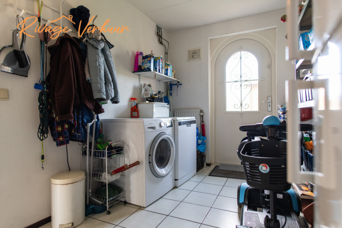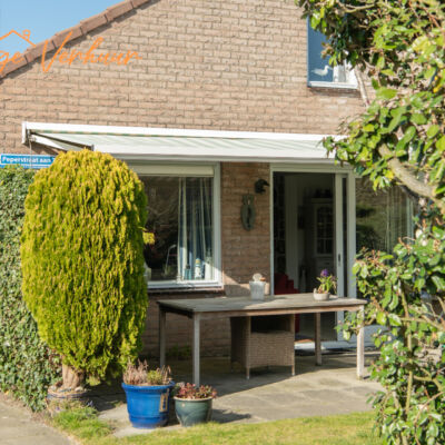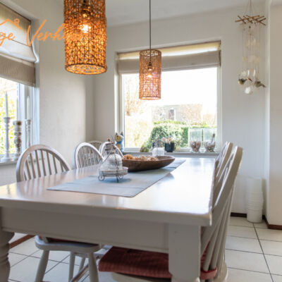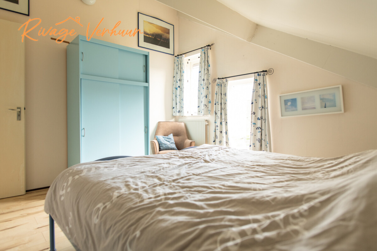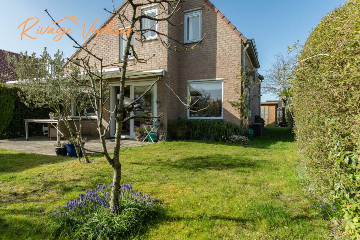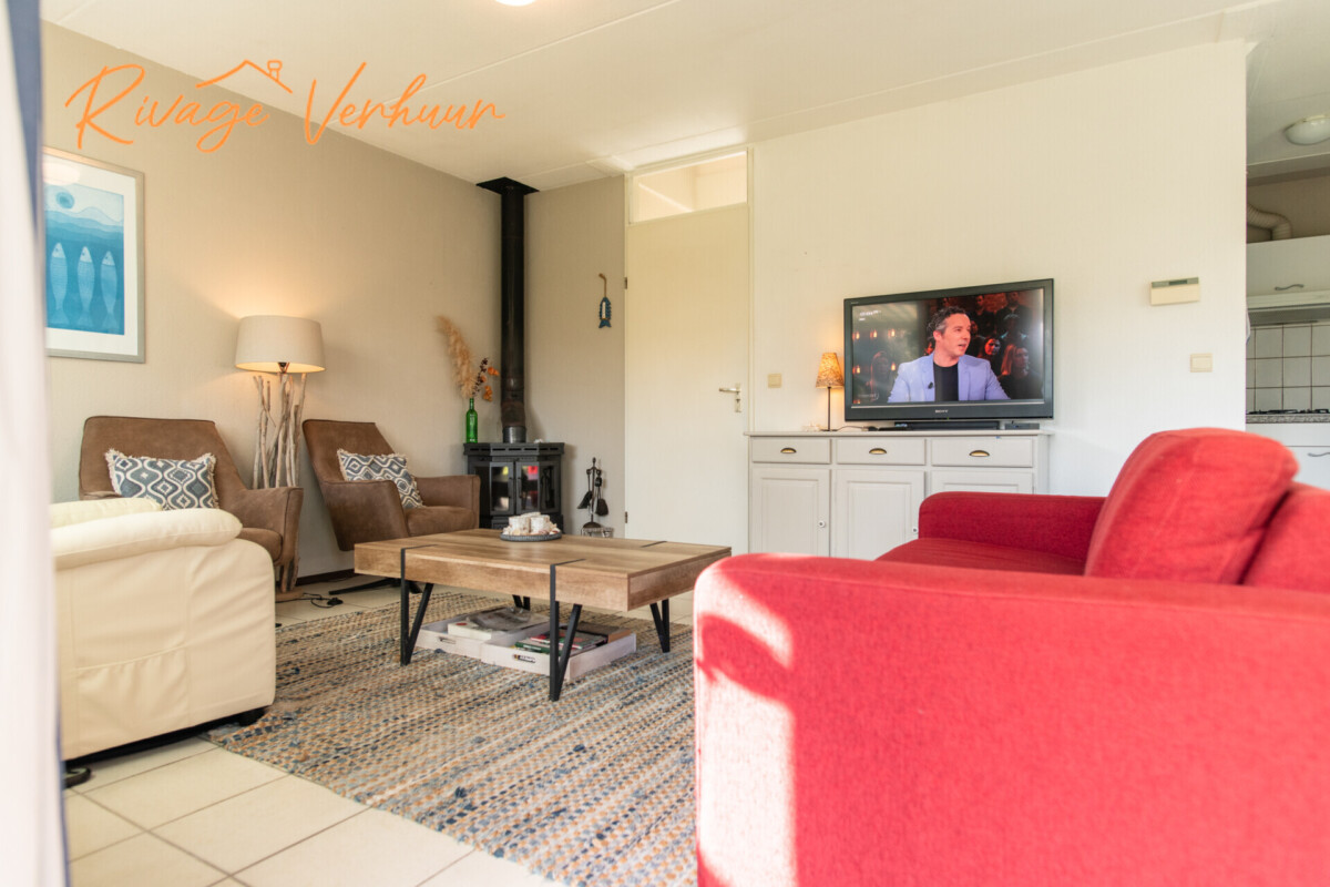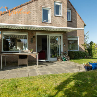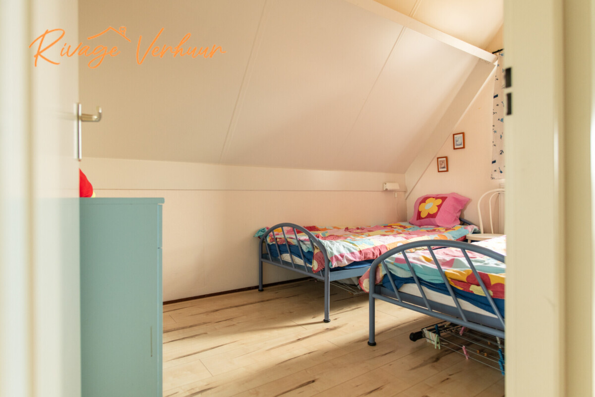 Na de keuken en bijkeuken kun je via de “achterdeur” naar buiten waar een ruim tuinhuis beschikbaar is voor fietsen of iets anders. Deze vrijstaande recreatiewoning staat midden op het ruime perceel van 340 vierkante meter eigen grond. Je kan dus overal in de zon of schaduw zitten afhankelijk van het weer en het moment van de dag.