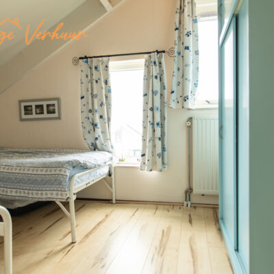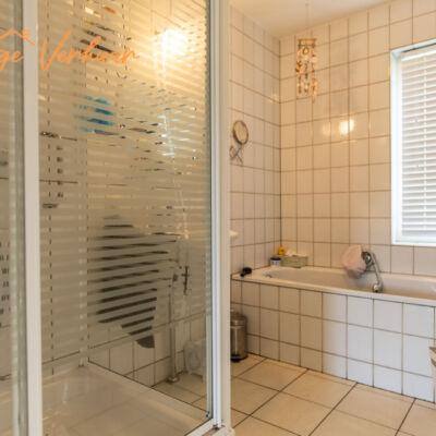 Terug naar binnen via de trap naar de eerste verdieping. Hier is de tweede badkamer en nog 3 slaapkamers. De loggia is heerlijk om even lekker te zitten of de was op te hangen. De loggia is ook redelijk eenvoudig af te sluiten zodat er een vijfde slaapkamer of bergruimte beschikbaar komt. De cv-ketel bevindt zich onder de loggia in de bijkeuken zodat een extra verwarming in de loggia zonder grote verbouwingen mogelijk is.